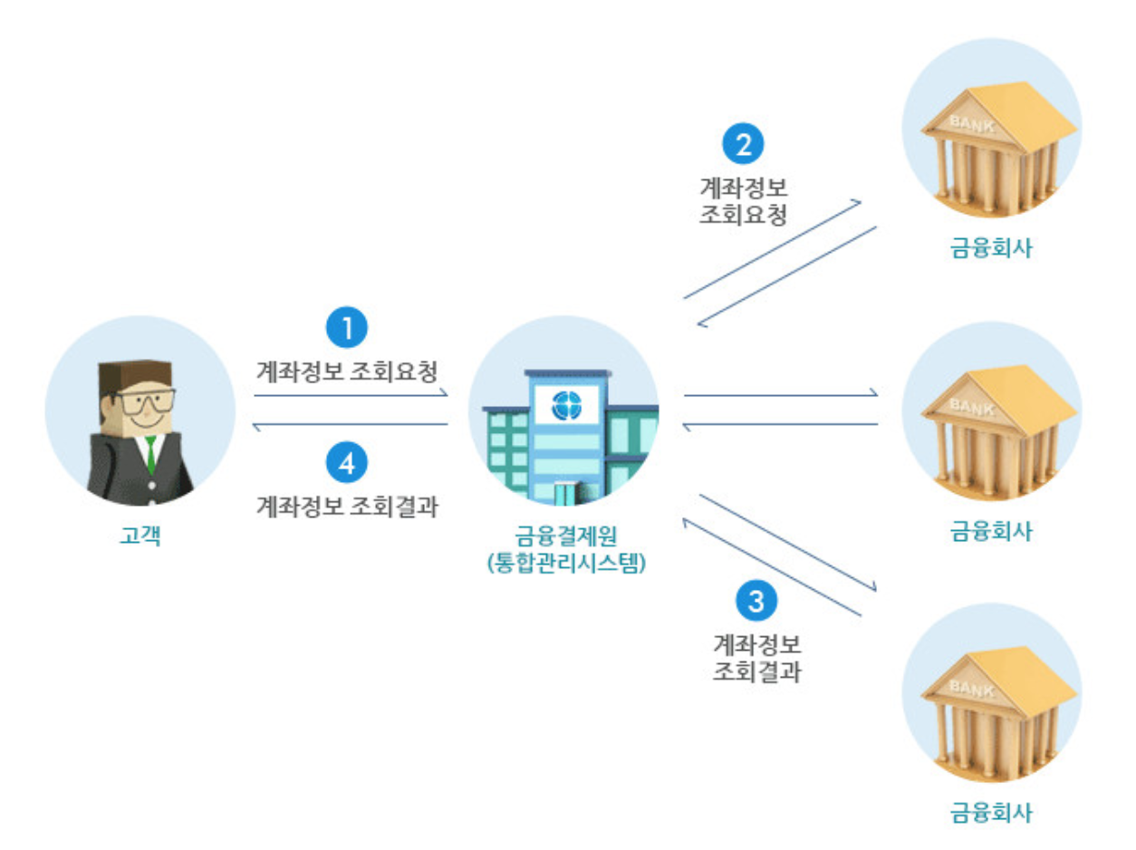휴면계좌 통합조회가 어떻게 가능한가요? 휴면계좌통합조회 시스템이 궁금해요 라고 물으신다면 위 이미지를 참고해주세요. 휴면계좌 통합조회 시스템은 고객으로부터 휴면계좌 통합조회 정보를 요청 그리고 금융결제원(통합관리 시스템)이 각각 다른 금융회사의 계좌정보를 조회하여 결과를 나타내줍니다. 쉽게 말해 휴면계좌 통합조회는 통합관리 시스템 금융결제원에 연동되어 통합조회가 가능한 것입니다.