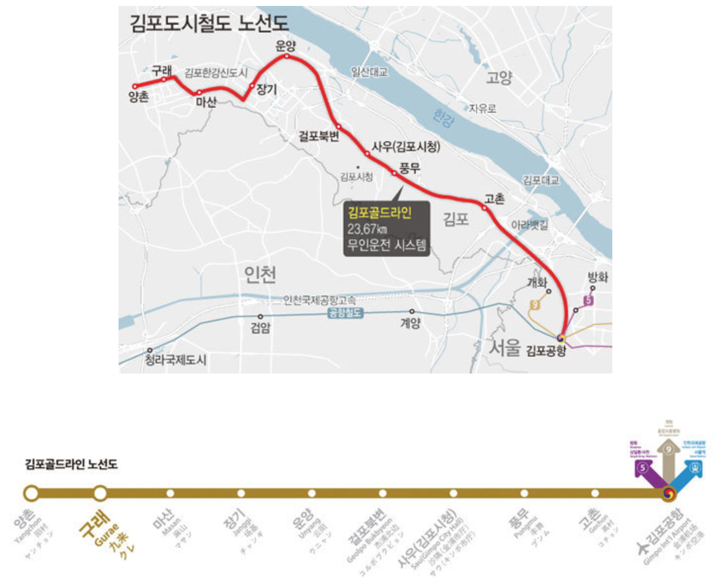 다음으로는 김포 도시철도 노선도를 알아보겠습니다.