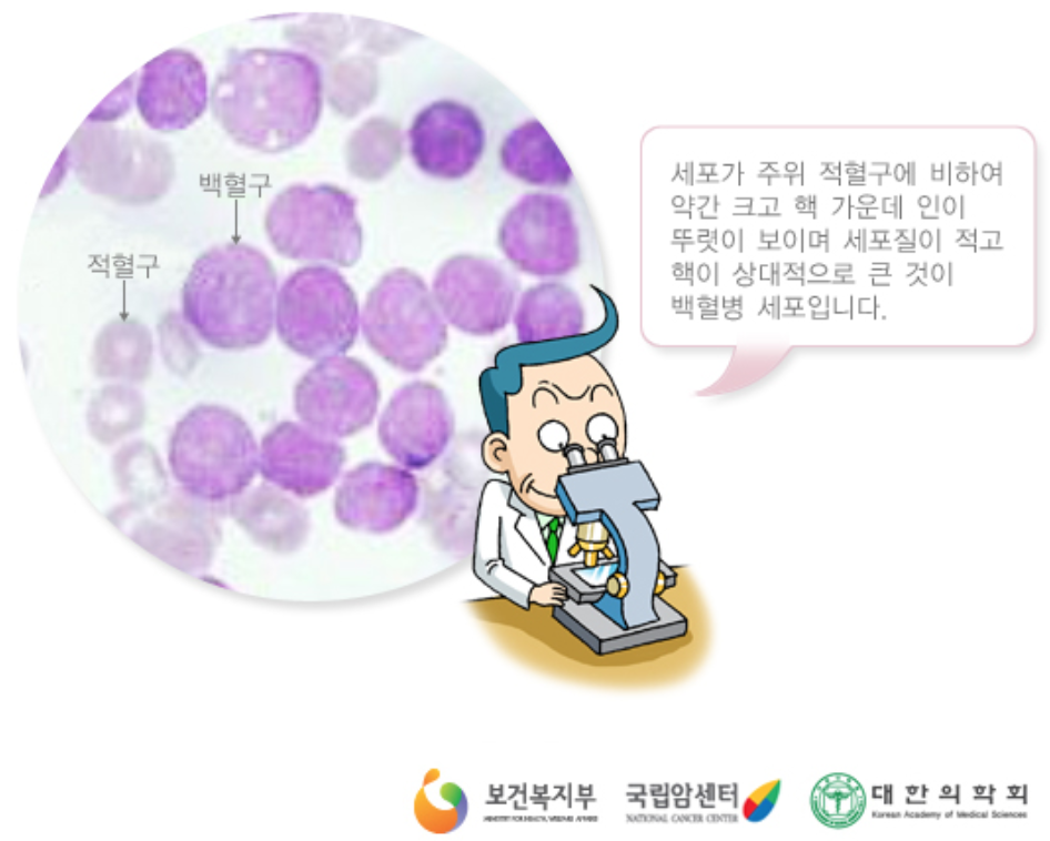 급성이라 함은 굉장히 짧은 시간에 병이 나타나는 것을 나타내는데, 혹시나 치료가 되지 않는다 한다면 몇 주 만에 치명적으로 될 수 있습니다. 반면에 만성 림포구성, 림프모구 백혈병은 굉장히 긴 시간동안 병이 진행된다고하니 참고해야할 사항중 하나입니다.