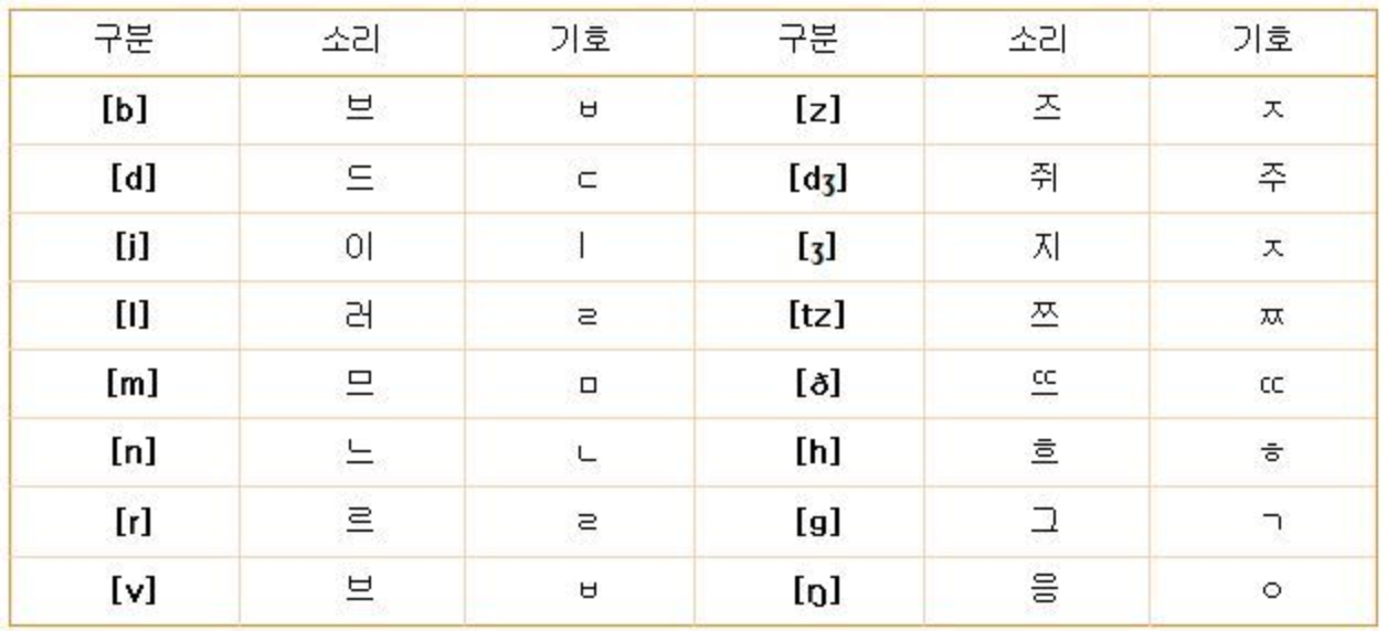 영어 발음기호 읽는법 중 위 이미지는 유성자음 발음기호입니다.