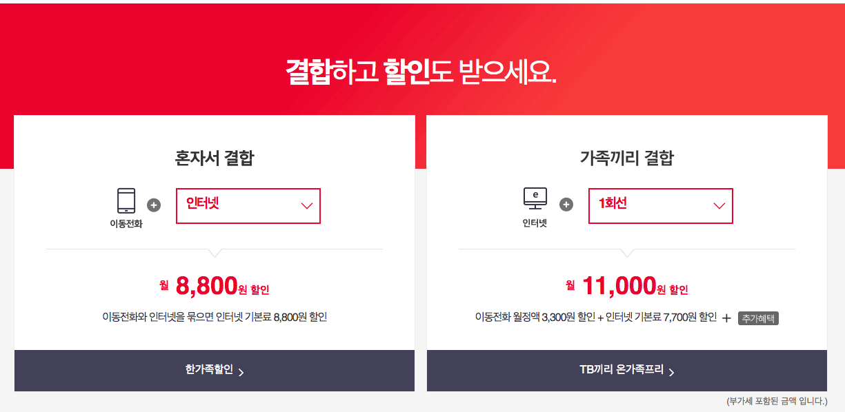본 페이지에서 위와 같은 정보들이 즐비하는데 아래로 스크롤을 쭉 내려준다면, 결합 또는 할인에 관해서도 안내를 받아 볼 수 있는 기회가 있습니다. skt 요금제표 확인 전 한번 쯤 보이는 페이지에 제공되는 서비스 또한 받아보는 것도 좋은 기회일 것 입니다. 아마도 꼼꼼하게 따져본다면 좋은 기회가 있을 것으로 보입니다.