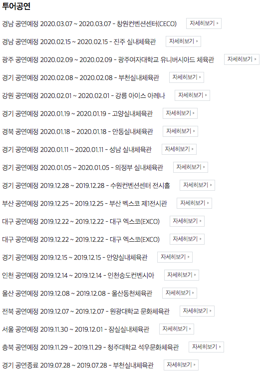 2019 내일은 미스트롯 전국투어 청춘콘서트 일정과 장소?