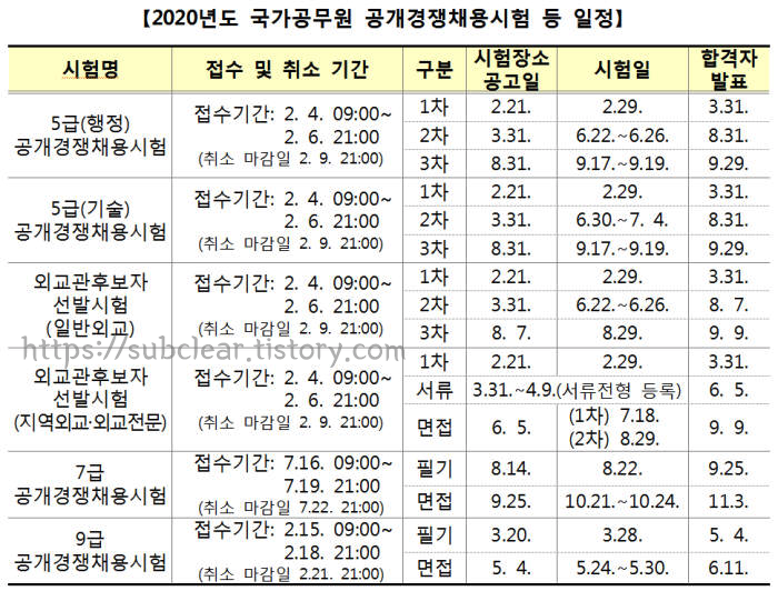 2020 공무원 시험일정