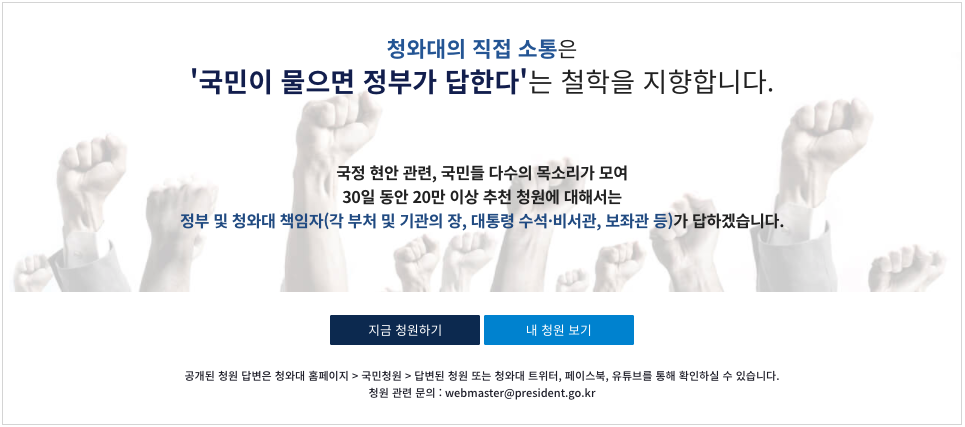 | 청와대 국민청원 홈페이지 게시판 바로가기 |