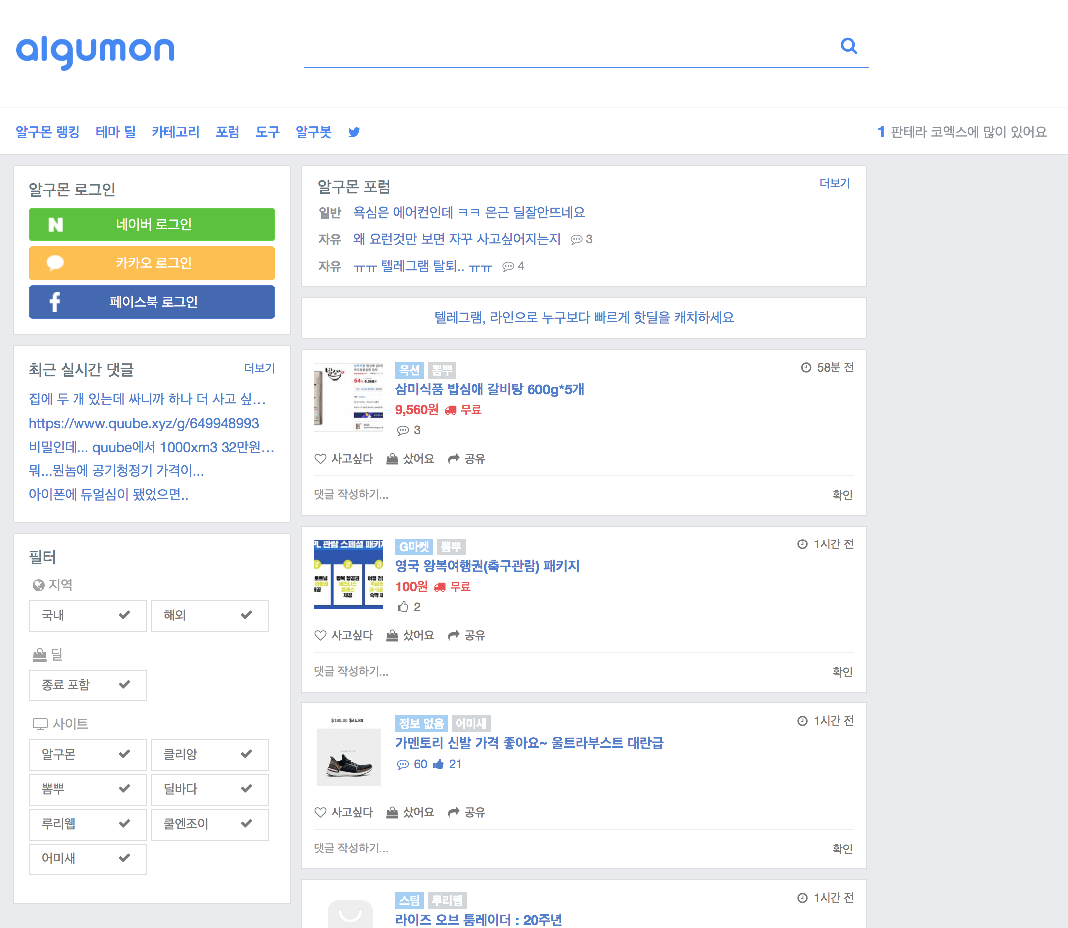 온라인 쇼핑 정보 한눈에 보는 사이트 알구몬(Algumon)을 알아보았습니다.