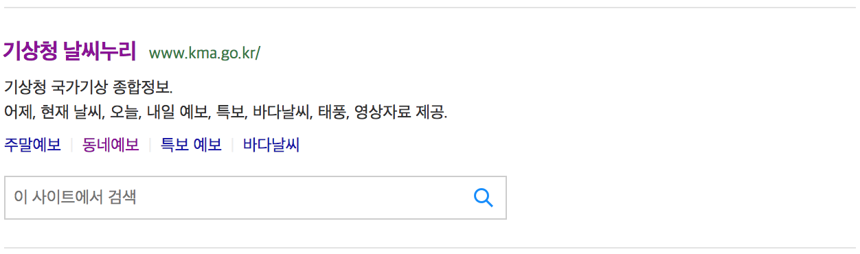 위 두 가지 링크의 다른 점이라 한다면 기상청 날씨 누리는 기상청 국가 종합정보를 제공하고 있으며, 특보, 태풍, 바다날씨 등의 종합적인 정보를 확인할 수 있습니다.