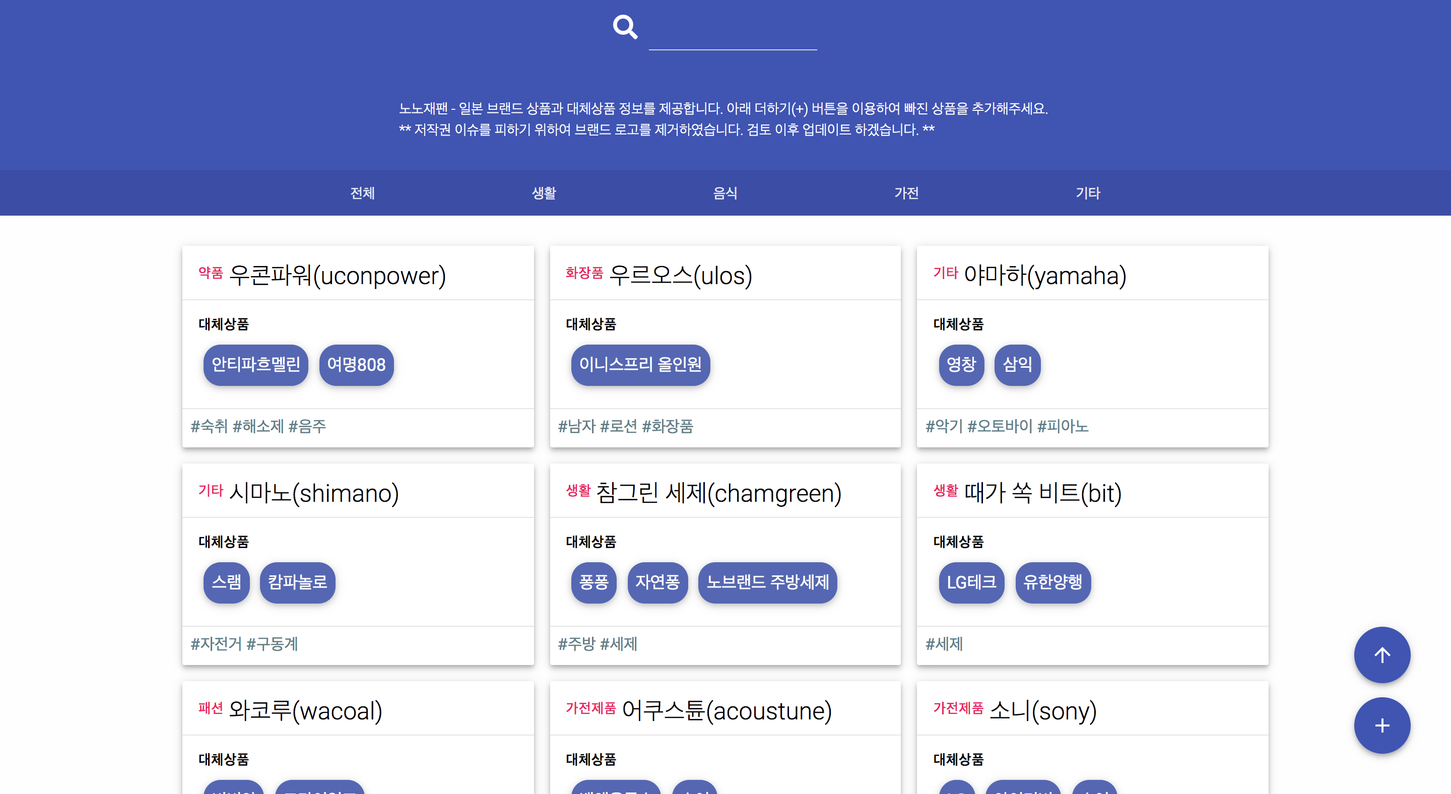 노노재팬 | 일본 불매 운동을 위한 원산지 표시 및 대체 상품 정보 제공
