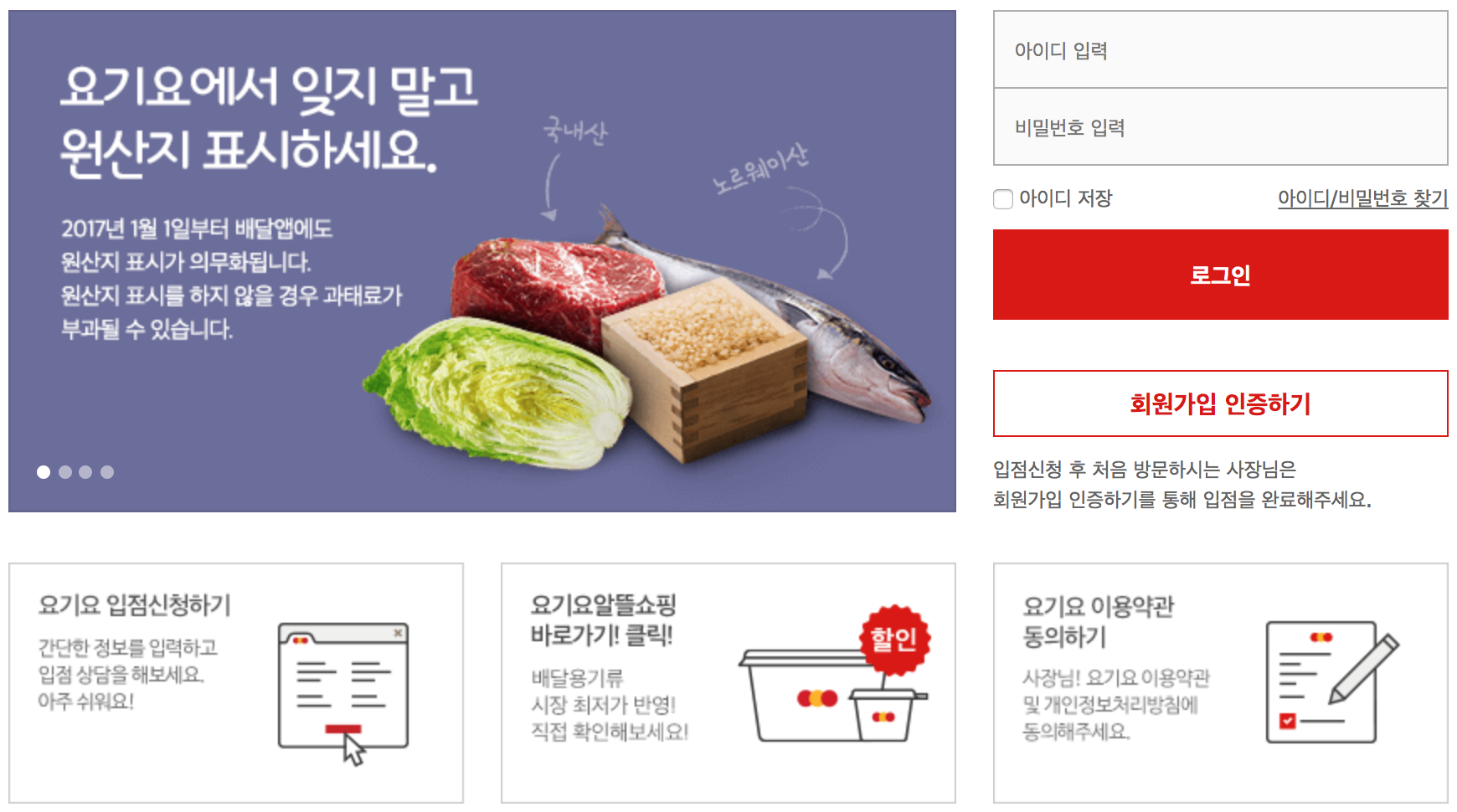 참고해주세요. 요기요 사장님 사이트는 사장님(owner)이라는 단어가 앞에 들어간 .yogiyo.co.kr/ 주소로 생성되어있습니다.